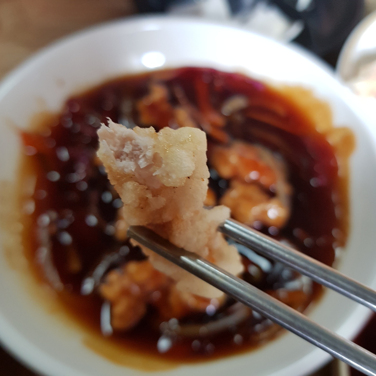 적당하게 튀켜진 탕수육은 일반적인 탕수육 맛입니다